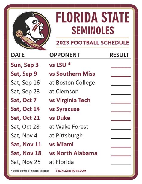 Here is a detailed schedule guide for the Florida State Seminoles: